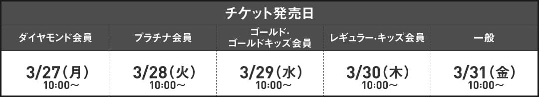 ※小中高校生までは子ども価格対象となり、大人価格より1,000円割引となります。なお、未就学児については同伴者の膝上でご観戦される場合はチケットのご購入は不要、席占有の場合はチケットのご購入が必要です。