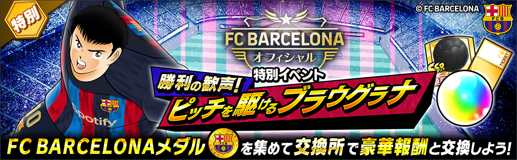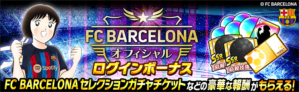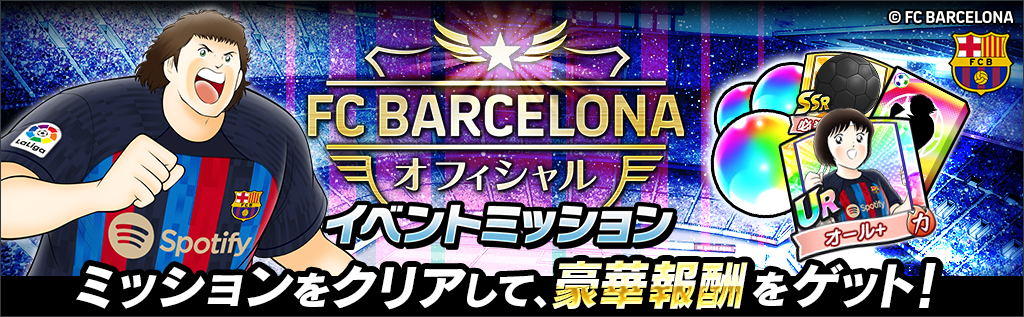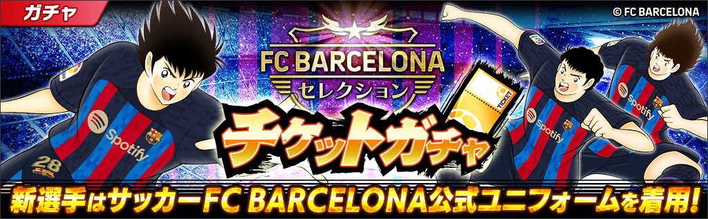 KLab株式会社(本社:東京都港区、代表取締役社長:森田英克、以下「KLab」)が提供するスマートフォン向け対戦型サッカーシミュレーションゲーム『キャプテン翼 ~たたかえドリームチーム~』では、3月17日(金)よりFCバルセロナ公式ユニフォームを着用した大空 翼、チャービ、パジョルが新選手で登場する「FC BARCELONA オフィシャルキャンペーン」を開催いたします。