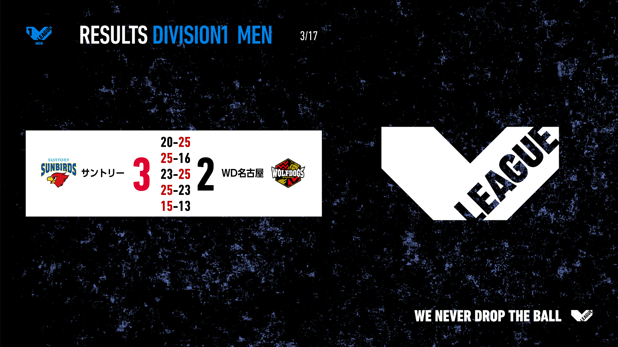 バレーボール国内最高峰リーグ V.LEAGUE【3月17日の試合結果】