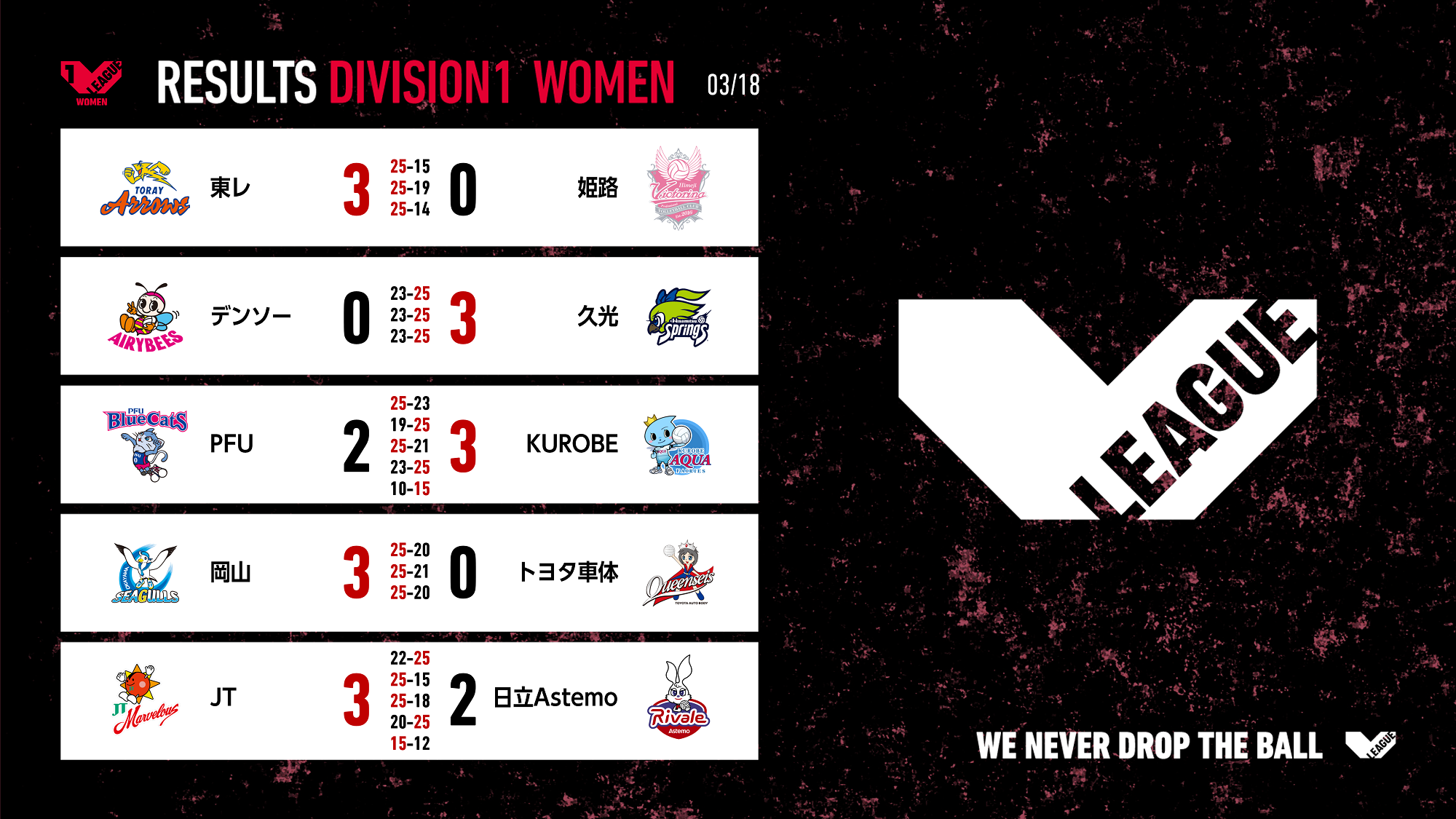 バレーボール国内最高峰リーグ V.LEAGUE【3月18日の試合結果】