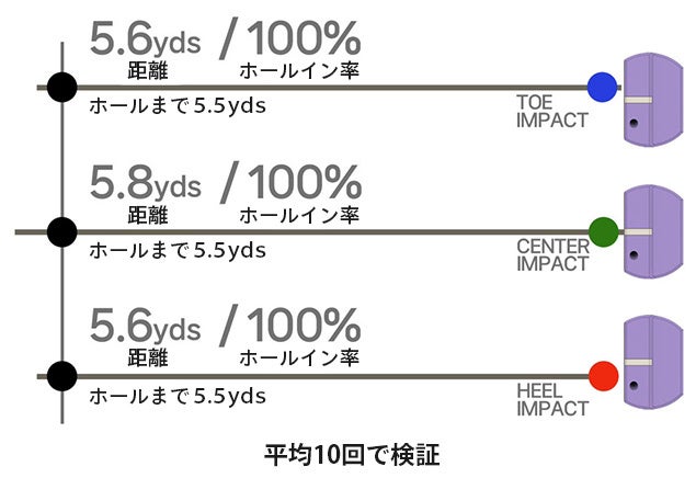 スイートスポットが広いので、真ん中を外してもホールインが実現できます。