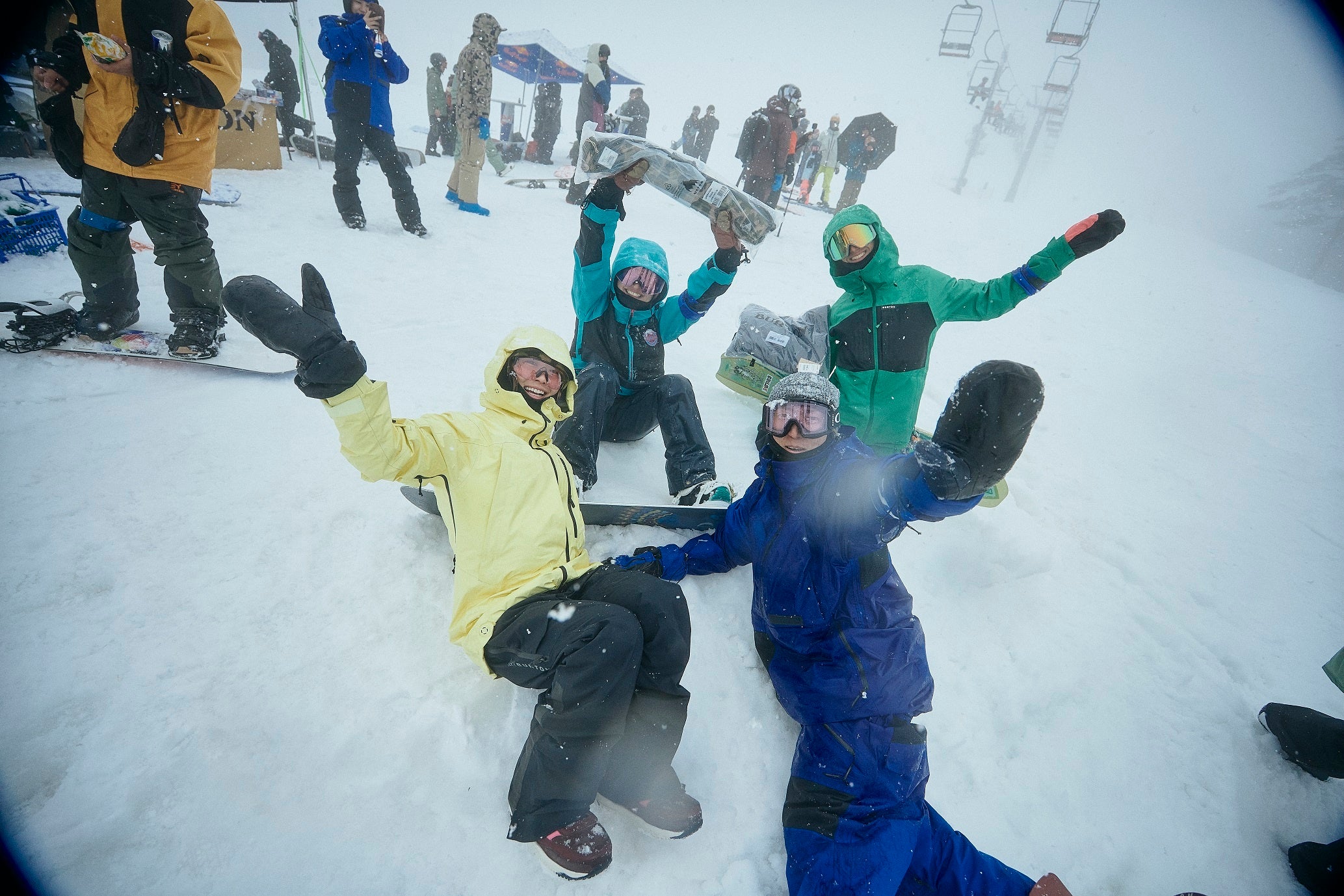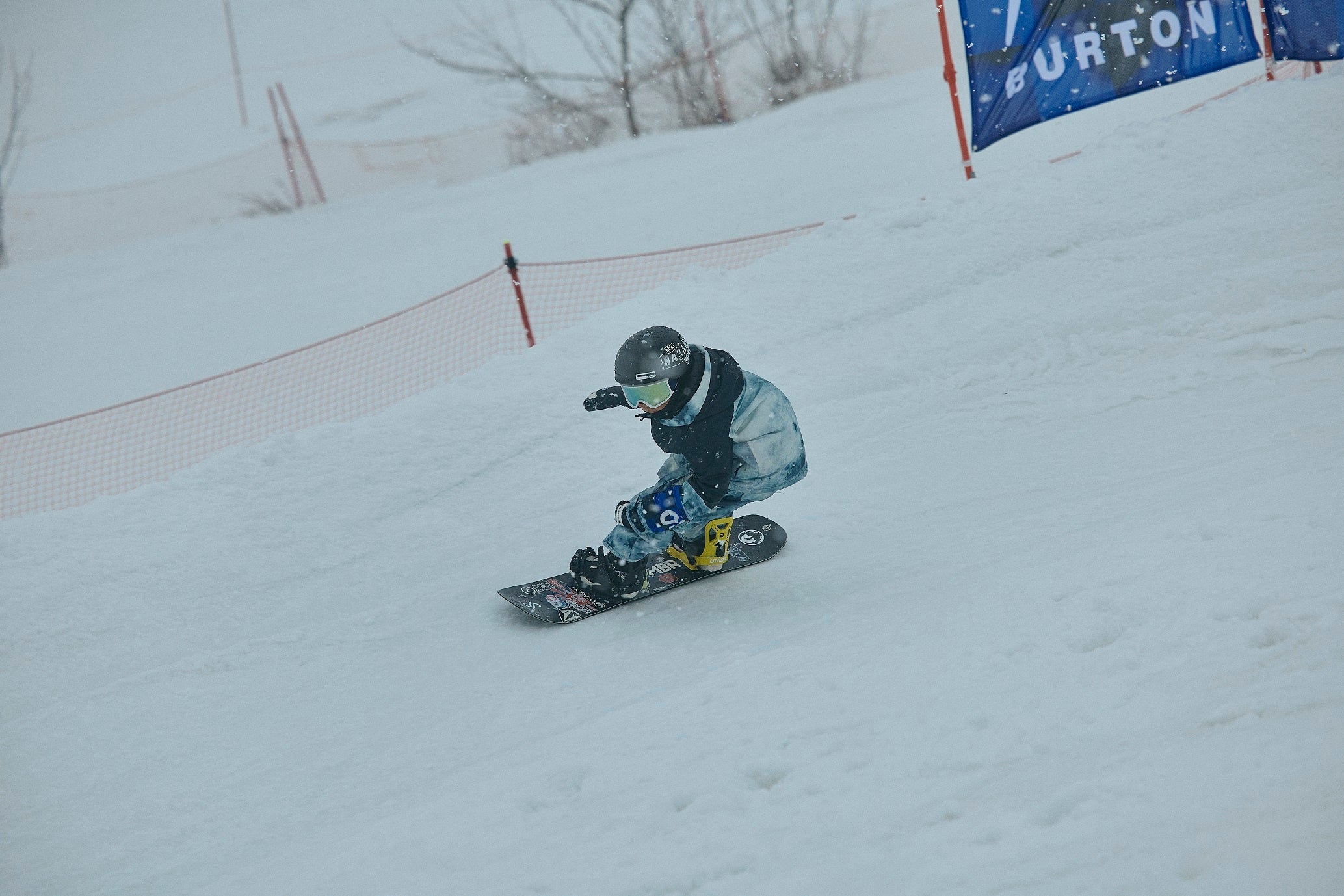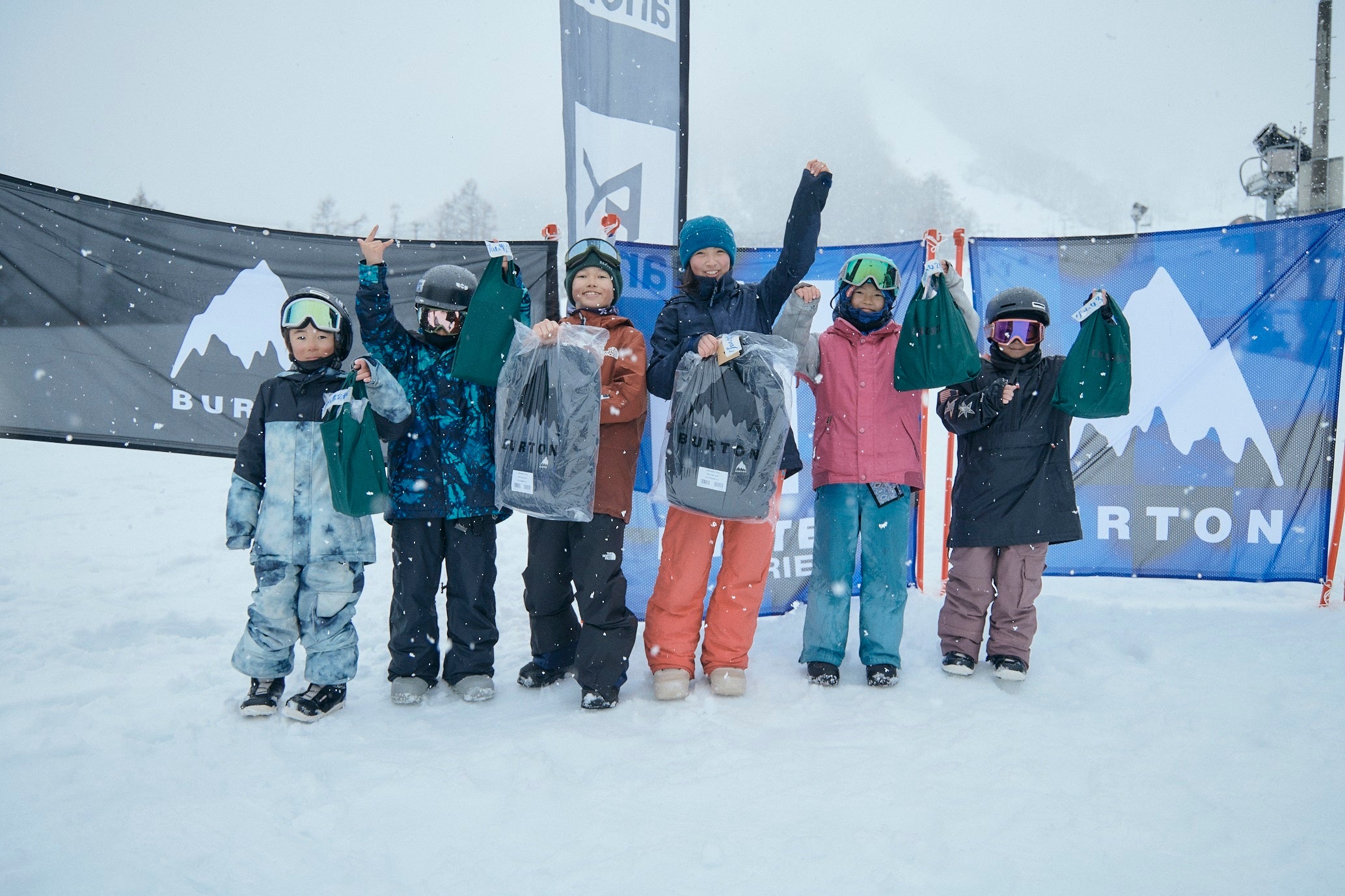 3月18日のイベント当日、春の雪が降りしきる白馬五竜の会場には、4歳から58歳まで幅広い年齢層のスノーボーダーが早朝から集まりました。バンクドスラロームとパークセッションに合計153名が参加。藤森由香、降旗由紀、中山悠也、宮澤悠太朗、竹内悠貴といったBurtonライダーも参加し、共にセッションを楽しみました。