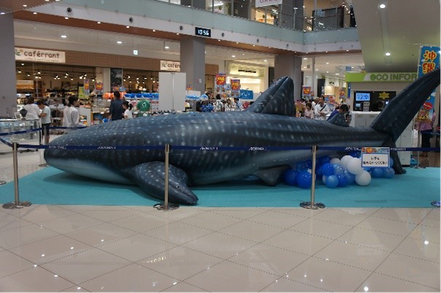 場外フォトスポットに、ジンベエザメの大きさを体感できる巨大バルーン(長さ8.5m×高さ2.8m×横幅3.7m)が展示されます。記念撮影をお楽しみください。