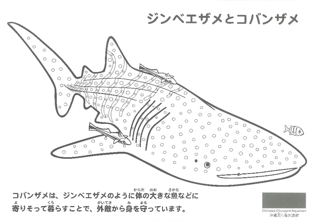 沖縄美ら島財団特設ブースにて、お子様向けにジンベエザメとコバンザメのぬり絵体験企画を予定しております。