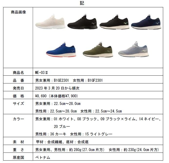 ミズノは、高反発素材『MIZUNO ENERZY FOAM(ミズノエナジーフォーム)』を搭載したウォーキングシューズ「ME-03Ⅱ(エムイーゼロサンツー)」をミズノ公式オンライン、全国のミズノウォーキング取扱店で3月20日から順次販売します。