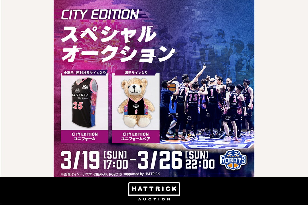 地球、そして私たちのために循環をデザインする「Circular Design for the Earth and Us」をパーパスに掲げ、大切なことにフォーカスして生きる人を増やすことを目指すバリュエンスジャパン株式会社(本社:東京都港区、代表:六車 進、以下 当社)は、同社が運営するスポーツチーム公認オークション「HATTRICK(https://auction.hattrick.world/)」にて、2023年3月19日(日)より茨城ロボッツ 〜CITY EDITIONスペシャルオークション〜を開催中です。
