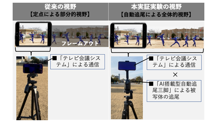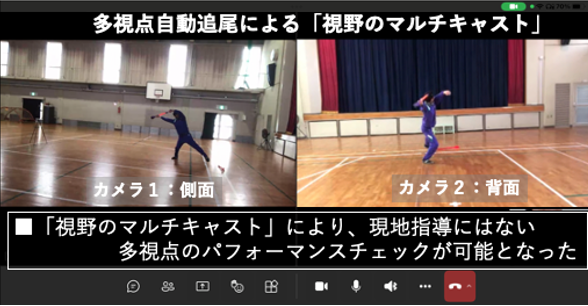 ② 複数台の「AI搭載型自動追尾三脚」が「視野のマルチキャスト」(写真1,2)を作り出す