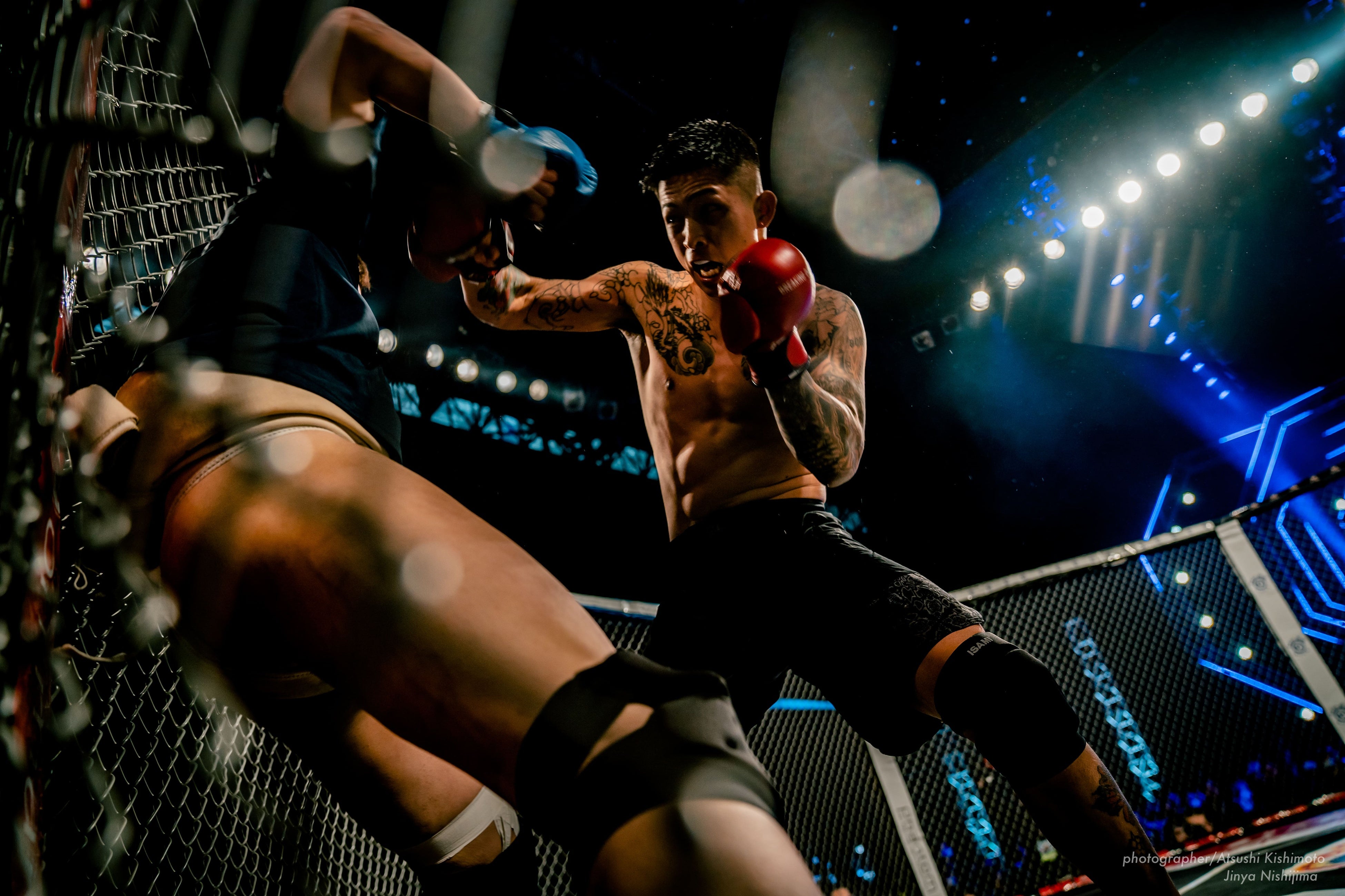 ジョリー選手が啓之輔選手を指名した形で試合が実現し、前日の記者会見からバチバチの雰囲気でした。果敢に攻めるジョリー選手と、間合いをうまく使い膝での一撃を狙う啓之輔選手。互いに1分間の試合の戦い方を知っているからこそ、決定打に欠け延長戦にもつれこみます。