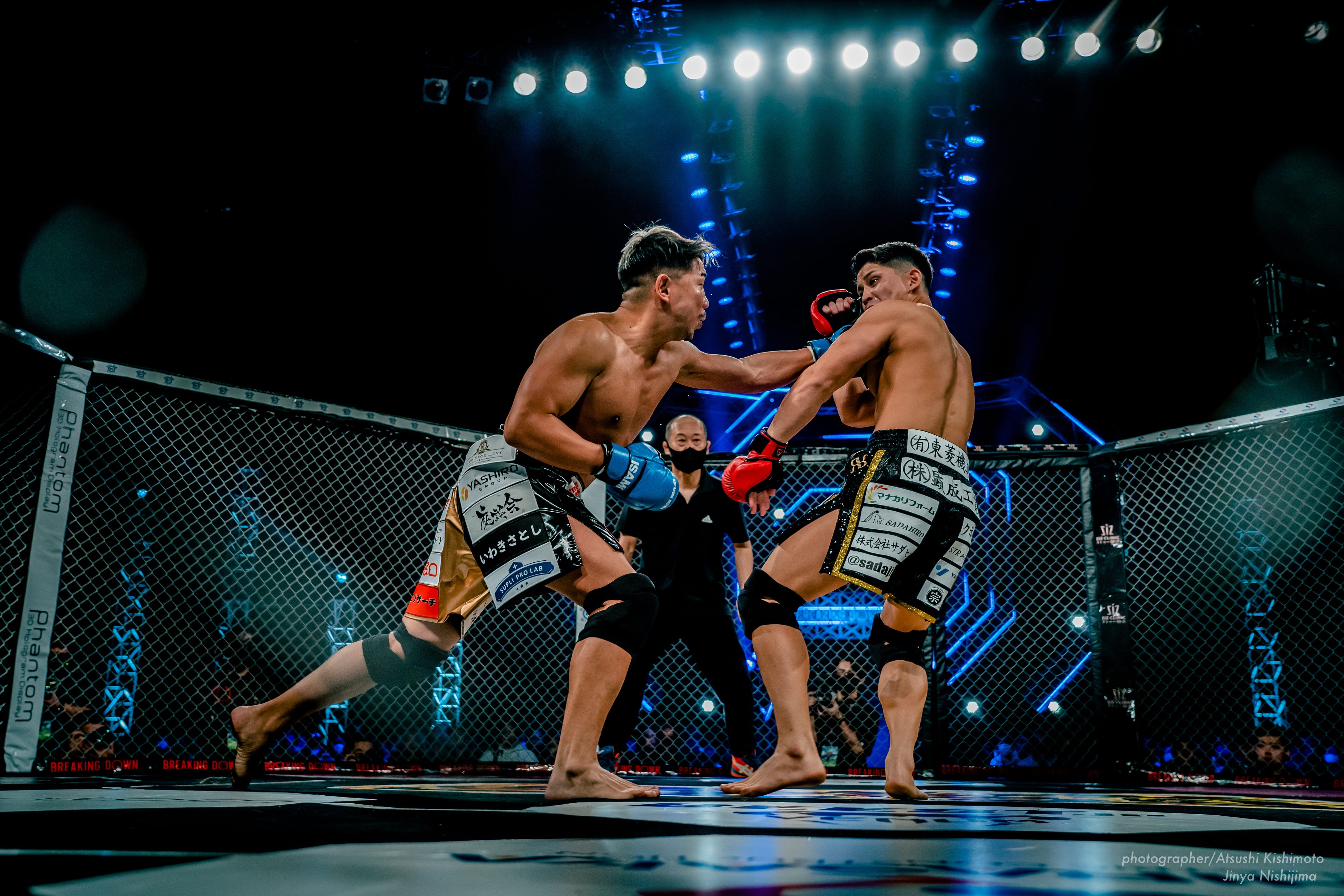 ■「母を救うために戦います 外枦保尋斗」選手 対 東大相撲部に所属する「キングオブエリート 有井皓太郎」選手の対決。薬物中毒の母を救うため、どん底から這い上がってきた男とエリートの王道を歩く男。正反対の道を歩いてきた二人の人生がぶつかります。お互いBreakingDown初参戦ということもあり、試合前は緊張感が漂っていました。