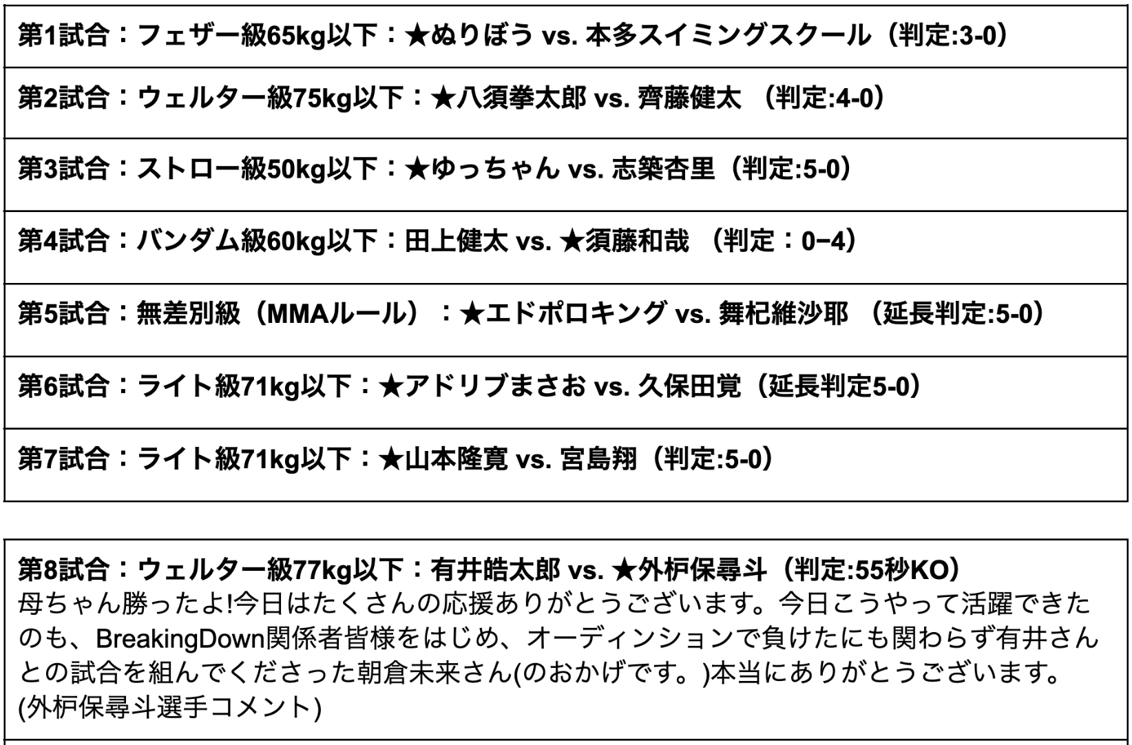 ■『喧嘩道 presents BreakingDown7』試合結果(★:勝利選手)