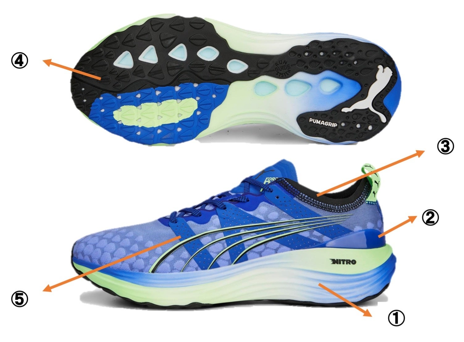 「ForeverRUN NITRO」は、異なる走りのランナーそれぞれに適したストライドを提供し、安定性にも優れたランニングシューズの新モデルです。ソールには、クッション性に優れたプーマ独自のフォーム材「NITRO FOAM(ニトロ フォーム)」を採用し、「RUNGUIDE System(ランガイド システム)」により過度なプロネーションを抑制し、人間本来の体重移動を促すことにより、適正な着地、快適な走りへと導きます。