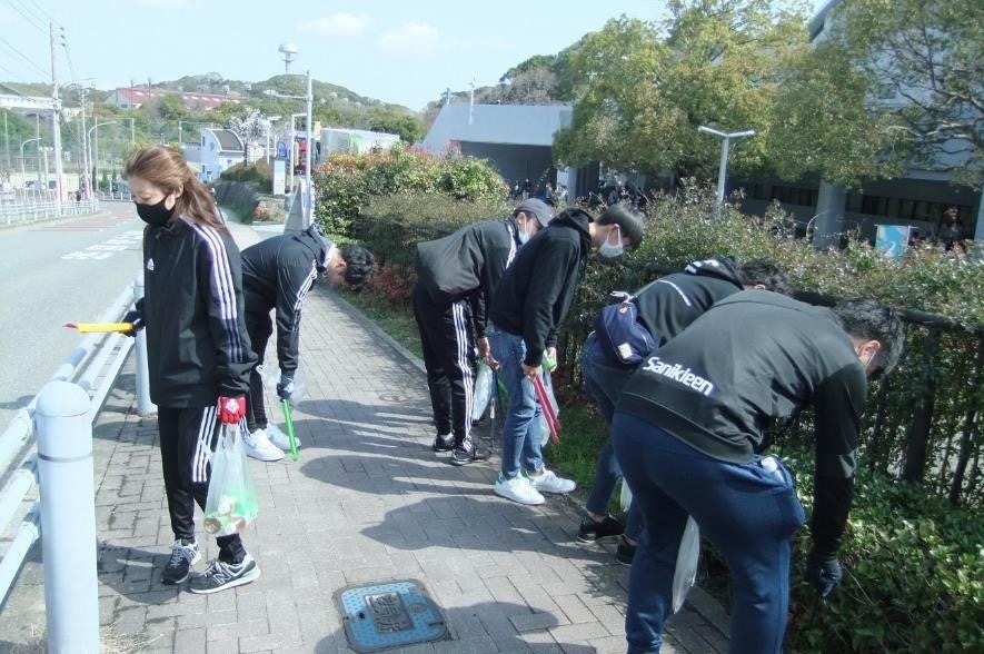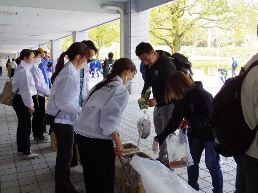 参加頂いた皆様は、空港~ベスト電器スタジアム周辺のエリアを中心に約1時間の清掃活動を行いました。参加したスクール生からは「こんなに捨てられているタバコの吸い殻が多いとは知らなかった」などの声があり、親子で参加されたサポーターの方からは「子どもの清掃活動への参加は、様々な気付きに繋がる点でとても有益だと思います」などのコメントを頂きました。また、参加企業からは「社会貢献的な活動に自分が出来る範囲で取り組んでみたい人は多いが、そのきっかけがないと感じていた。地元企業として、このような取り組みで環境問題に目を向ける良い機会になった」などの声を頂きました。
