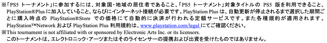 昨年12月に実装された、「PS5 トーナメント機能」を使った本大会に是非ご注目下さい。また、今後も「PS5トーナメント機能」を使用したイベントや大会を随時、ご案内してまいります。