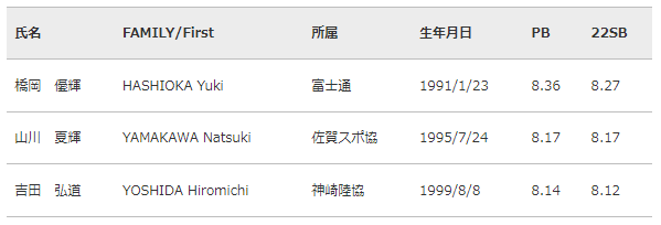 【チームJAPAN】https://www.jaaf.or.jp/athletes/?event=1