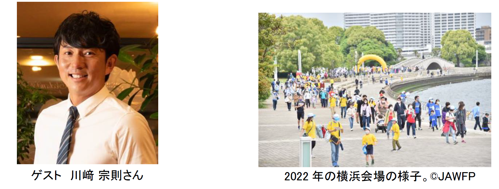 「WFPウォーク・ザ・ワールド」は、途上国の子どもたちの飢餓をなくすことを目的として2005年にスタート。ウォーキングは赤レンガ倉庫や港の見える丘公園をはじめとする横浜の名所を巡る5キロ10キロの2コースで、3,500人を募集。当日はゲストとして、元福岡ソフトバンクホークス選手で、2006年に開催された第1回ワールド・ベースボール・クラシック(WBC)で日本代表として活躍した、川﨑 宗則さん(栃木ゴールデンブレーブス)が参加します。