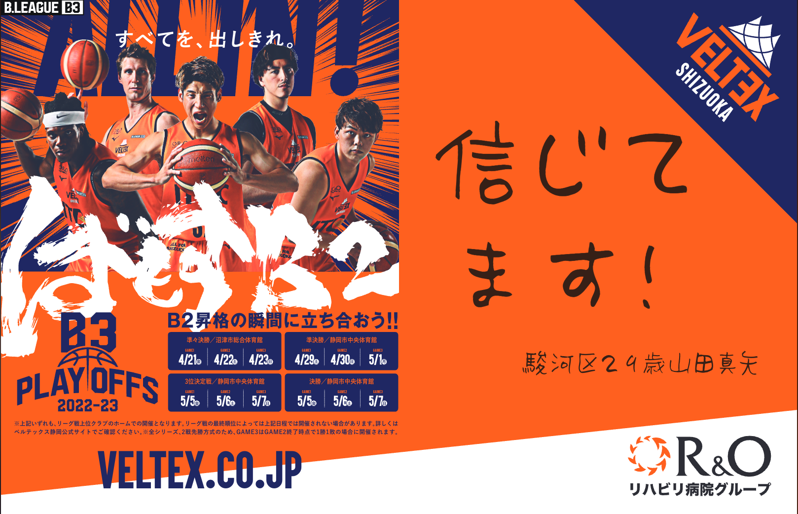 ぜひ皆様の熱いメッセージで静岡市民の皆様に、ベルテックス静岡の魅力とプレーオフに向けたワクワクをお伝えください!