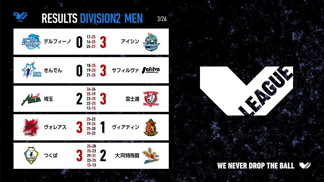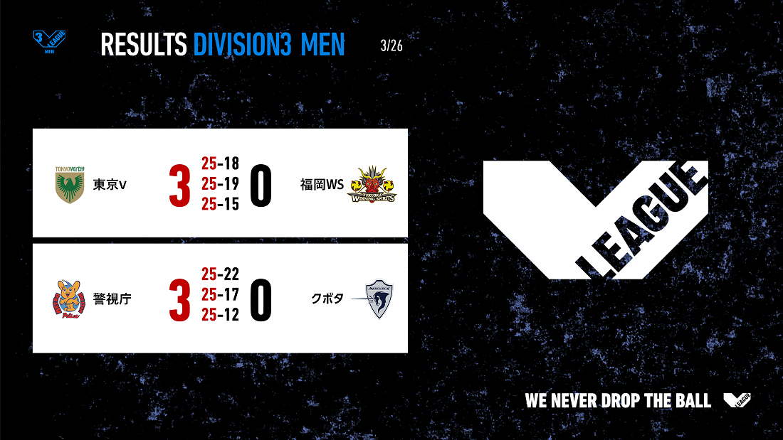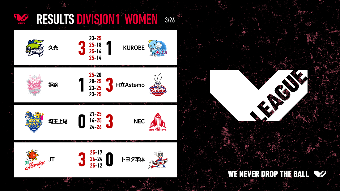 バレーボール国内最高峰リーグ V.LEAGUE【3月26日の試合結果】