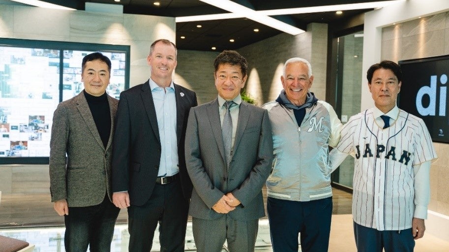 ※左から:当社代表取締役COO(最高執行責任者)志立 正嗣、ロサンゼルス・エンゼルス球団 副社長 マイク・ファッシュ氏、当社代表取締役社長 兼 CEO(最高経営責任者)冨田 英揮、ロサンゼルス・エンゼルス球団 相談役 ボビー・バレンタイン氏、当社取締役 CBO(最高事業責任者 )岩田 和久