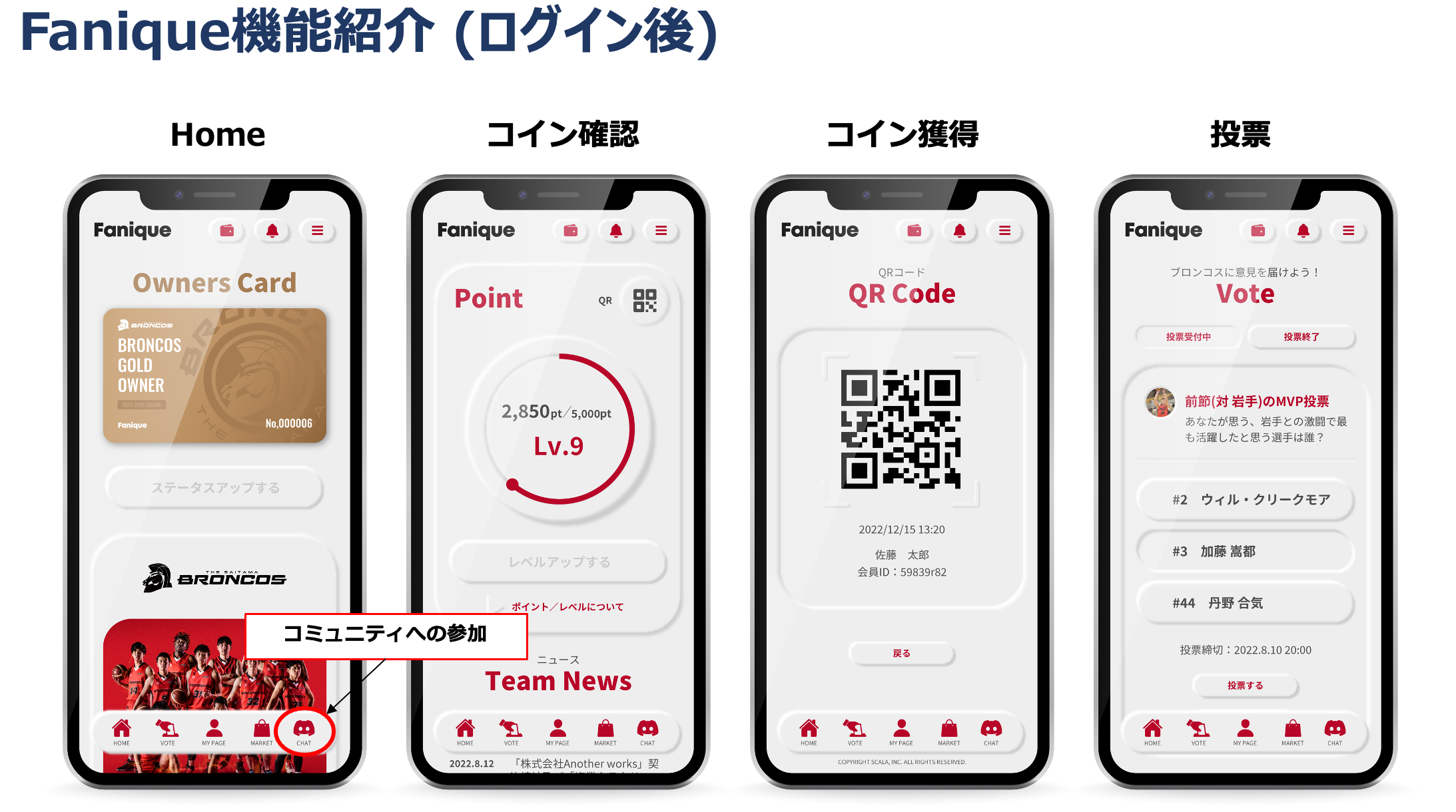 スポーツチームは、メンバーシップNFTをFanique上で発行して、ファンコミュニティを運営していくことができます。ファンの応援熱量が可視化されたFaniqueによって新しいファンコミュニケーションが可能となります。