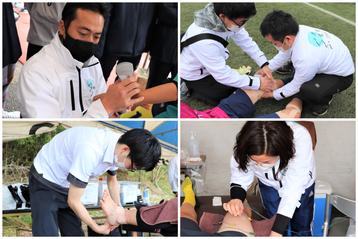 スポーツ大会に救護ブースがあり、国家資格を保持した柔道整復師・鍼灸師がいる事により、選手や監督・保護者の方の安心にも繋がります。