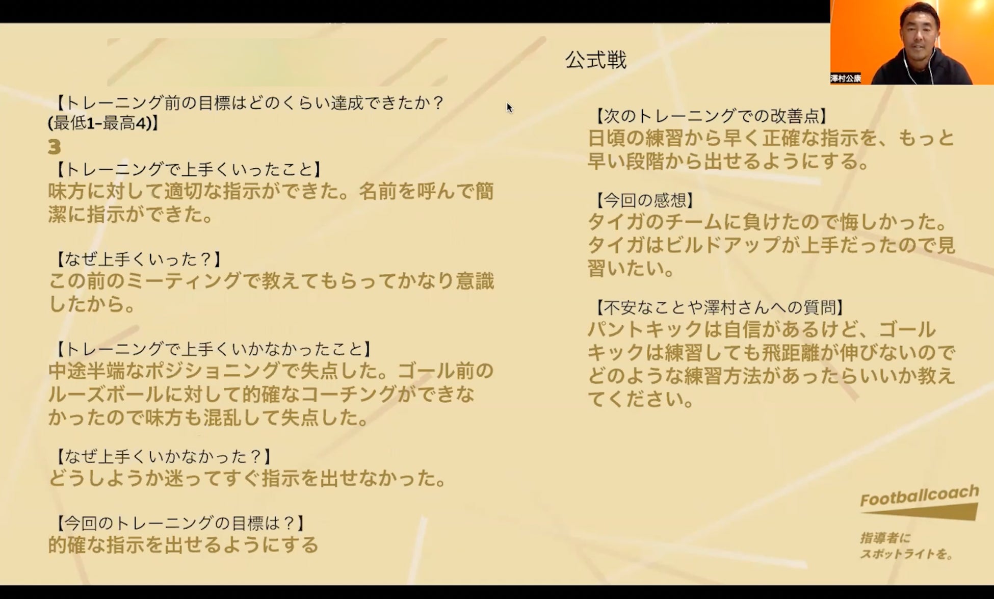 サンフレでコーチ務めた澤村公康さんが遠隔指導