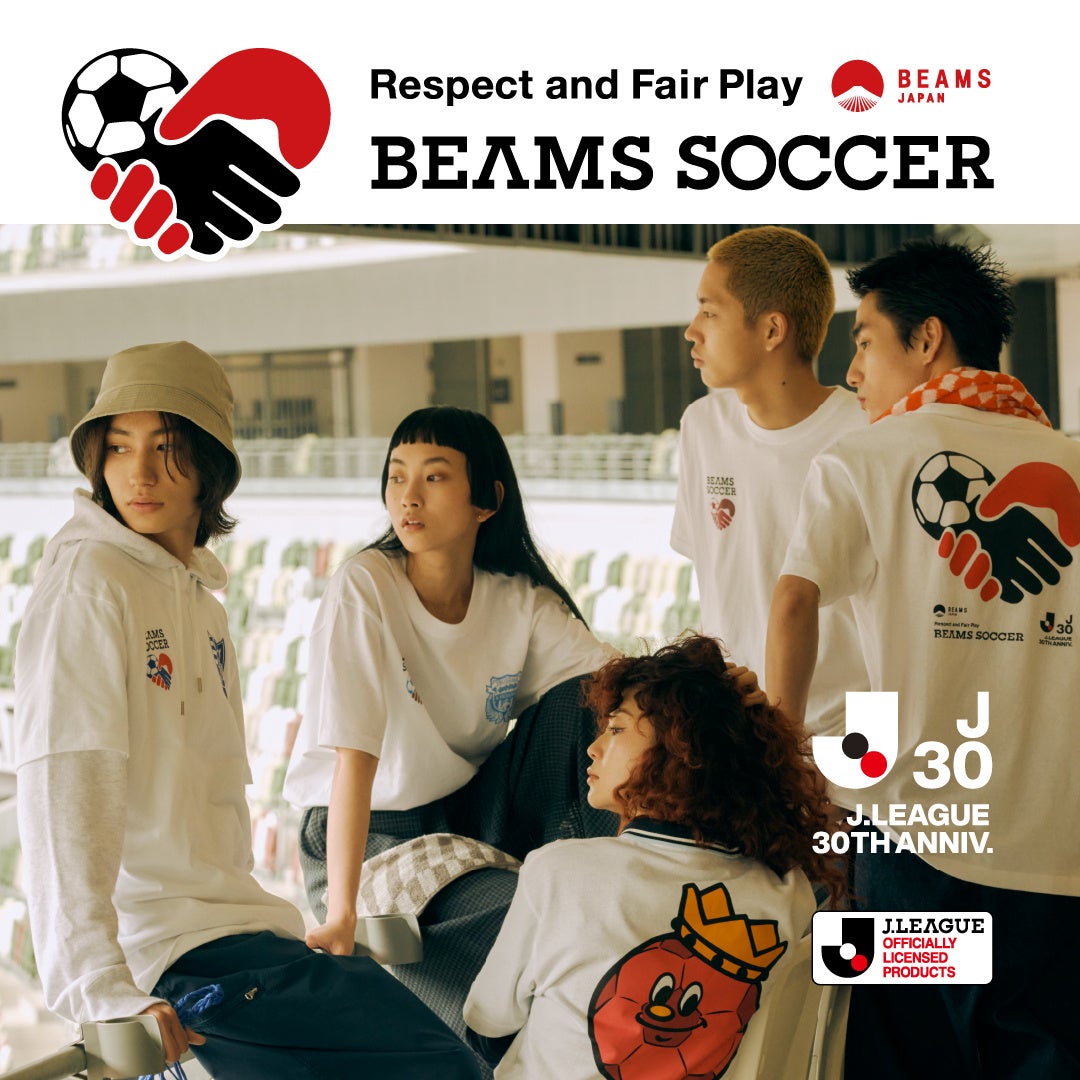 BEAMSが日本のサッカー文化を盛り上げるプロジェクト。競技、観戦、ファッションなどを含め、サッカーの魅力を多角的に紹介することで、より多くの人がサッカーを身近に感じ、それぞれに合ったサッカーの楽しみ方を発見するきっかけ作りを目指します。第一弾は、日本の魅力を発信するBEAMS JAPANの取り組みのひとつとして、日本のサッカー文化が世界に誇る「フェアプレー」の精神をテーマにした商品を、Jリーグ30周年記念のコラボレーションとして企画しました。
