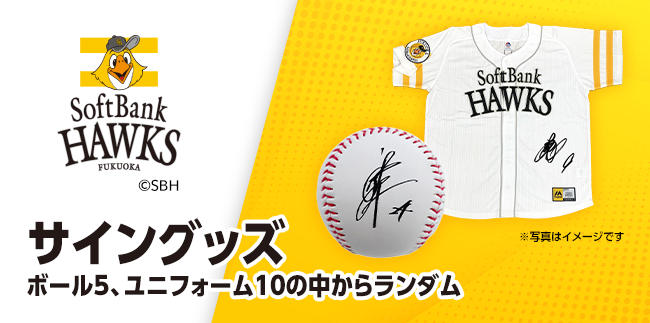 - 第1弾は「福岡ソフトバンクホークス」!選手サイン入りグッズなどが抽選で当たる