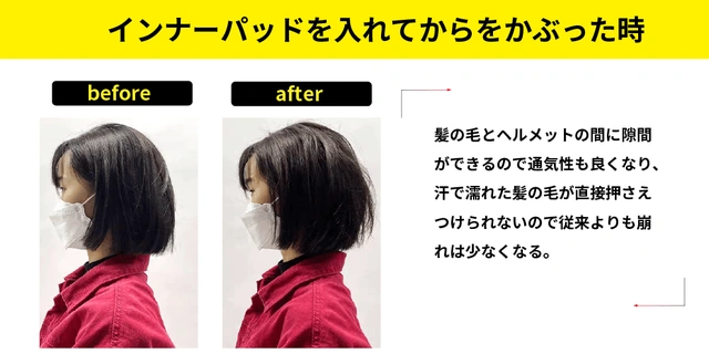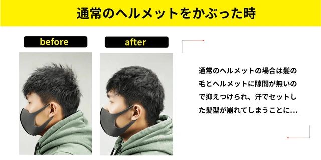ヘルメットをかぶることで一番気になるのは、かぶるとせっかくセットした髪型が崩れるという声を沢山頂きました。