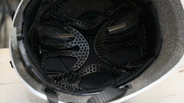 髪の毛とヘルメットの間に若干隙間を用意し、汗をかいてもヘルメットと直に接する面積を減らして圧着をできる限り減らし、通気性を高め蒸れを軽減することで髪型崩れをなるべる抑えるようにしました。