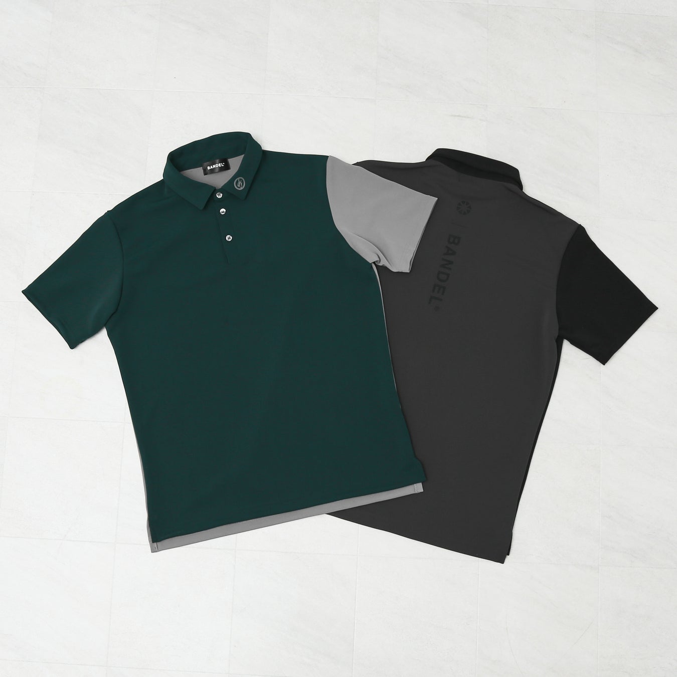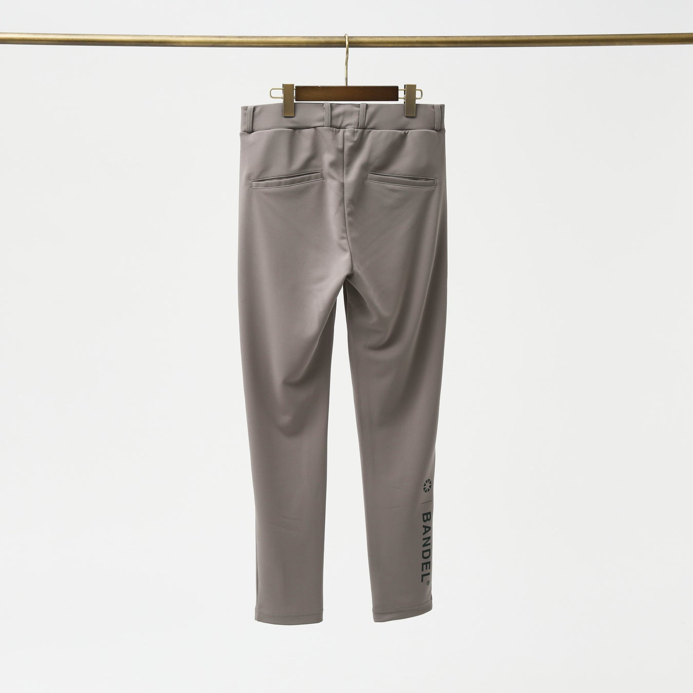 POLOと同じ色を配したセットアップデザインです。フロント左脚にSPEAK FORのロゴマーク。右足ふくらはぎにはBANDEL®のロゴを配して、限定コラボレーションのSPECIAL感を演出しています。