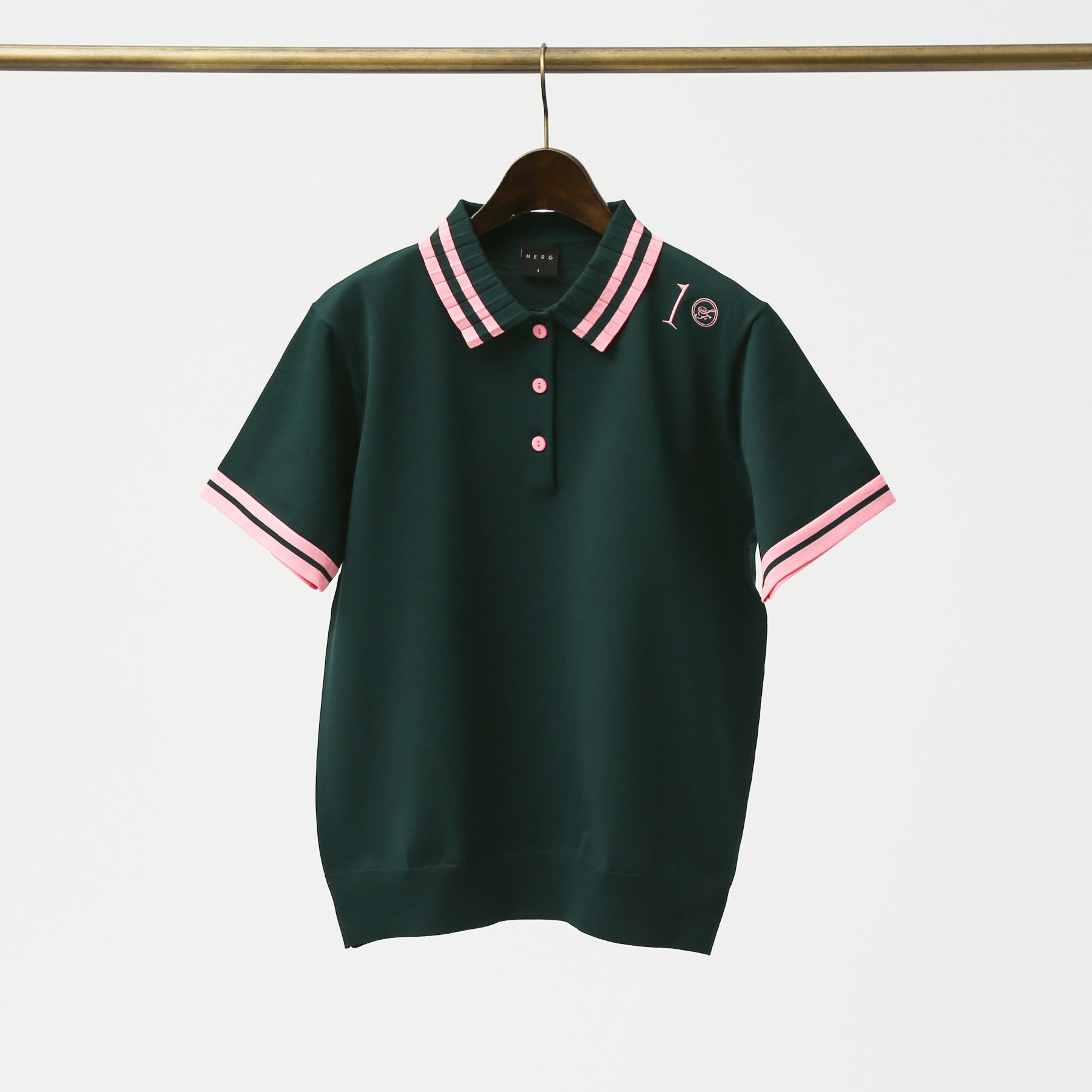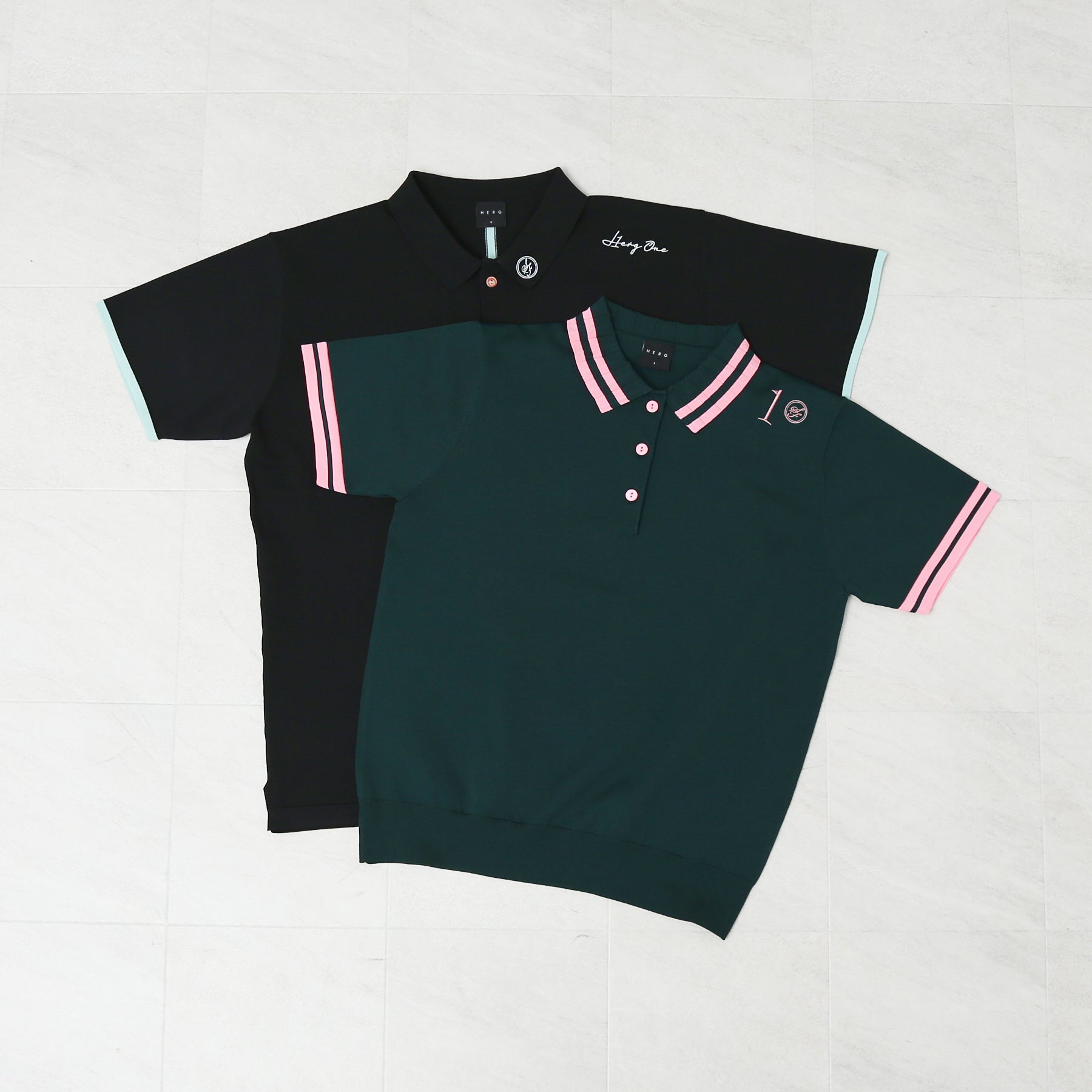 ブラックにミントカラーを差し込んで大人らしい淡いクールさを演出。もう1色のダークグリーンにはトレンドカラーのピンクを合わせて、イタリアのシチリア地方をイメージしています。ゴルフだけで花区、普段使いでデニムにも合わせやすいカラーリングを意識しました。