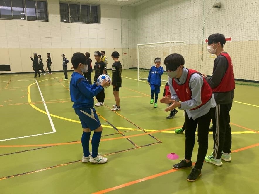 また、小学校の授業以外では、「コミュニケーションスキルレベルアップ体験会」と題し、ブラインドサッカーやデフサッカーの選手と一緒にコミュニケーションを取りながら様々なゲームへのチャレンジや、少年院/少女院へブラインドサッカー選手、トップチーム選手及びスクールコーチで訪問し院生と一緒にブラインドサッカー体験会を実施しております。