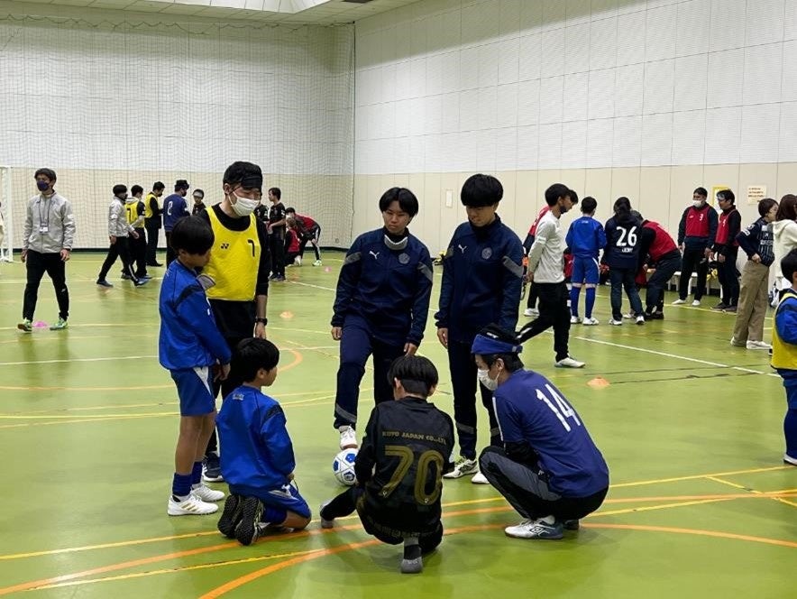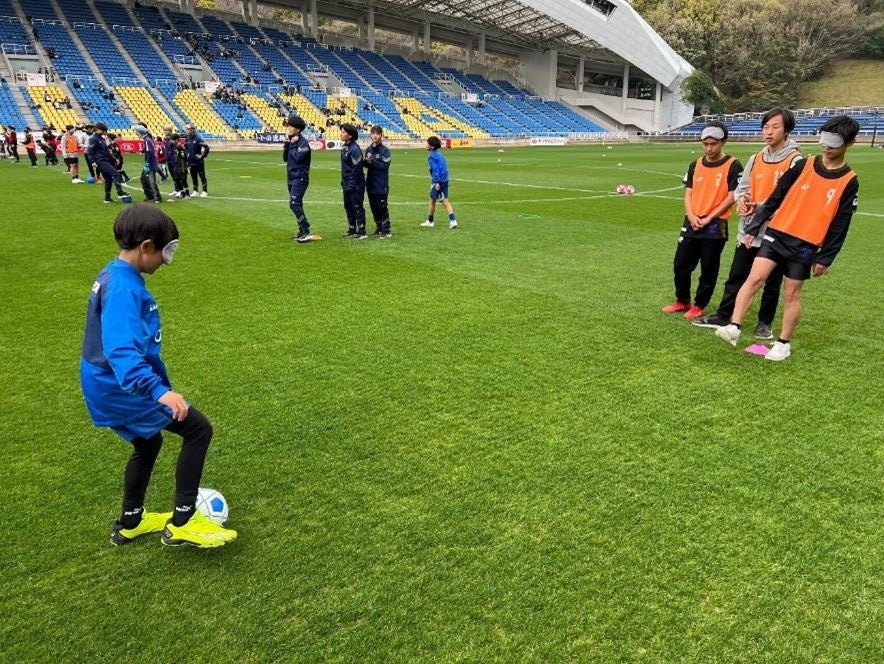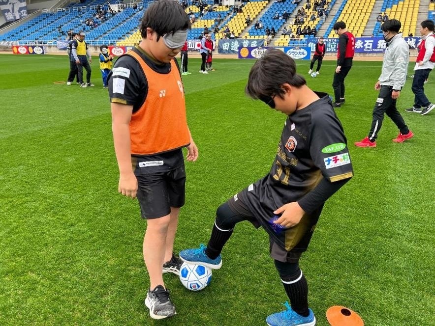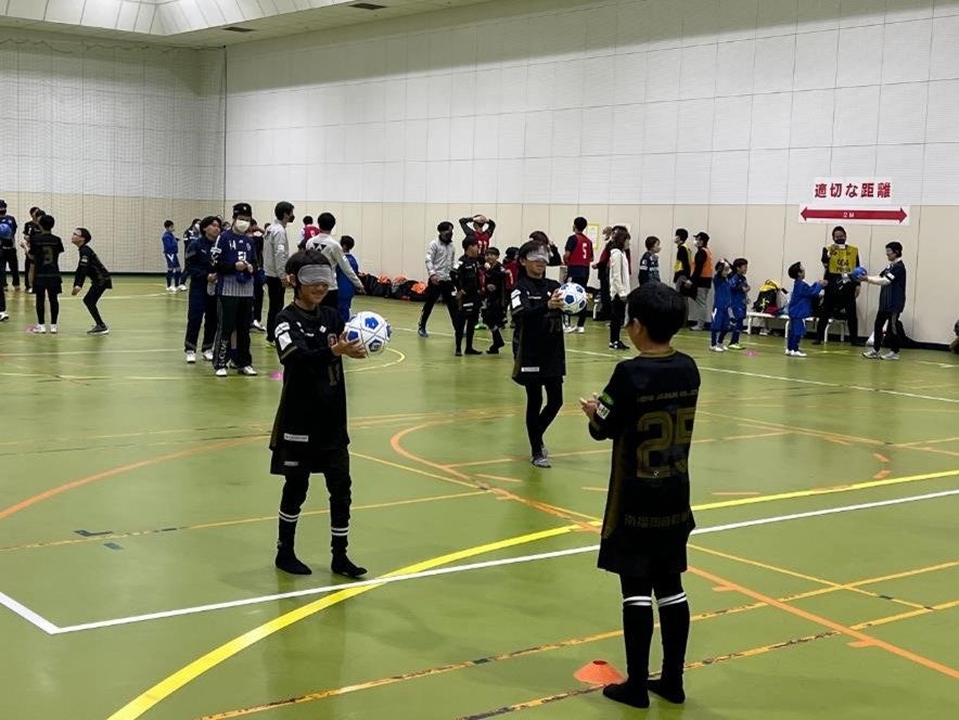 また、チーム対抗のレクリエーションでは、声や拍手で“相手に自分の場所を伝える”難しさに対して、スクール生や他のサッカーチームの子ども達、シャレンパートナーの企業様、大学生など、所属も年齢も異なる皆様がどのような方法が最適なのか意見を出し合い、1つのゴールを目指すコミュニケーションが生まれており、心を1つにするスポーツの素晴らしい魅力も溢れていました。