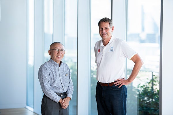 スウェーデンオリンピック委員会 スウェーデンオリンピックチーム(2024年パリ大会)団長兼スポーツ部門責任者 ピーター・レイネボ氏(右)と、株式会社ファーストリテイリング 代表取締役会長兼社長 柳井 正