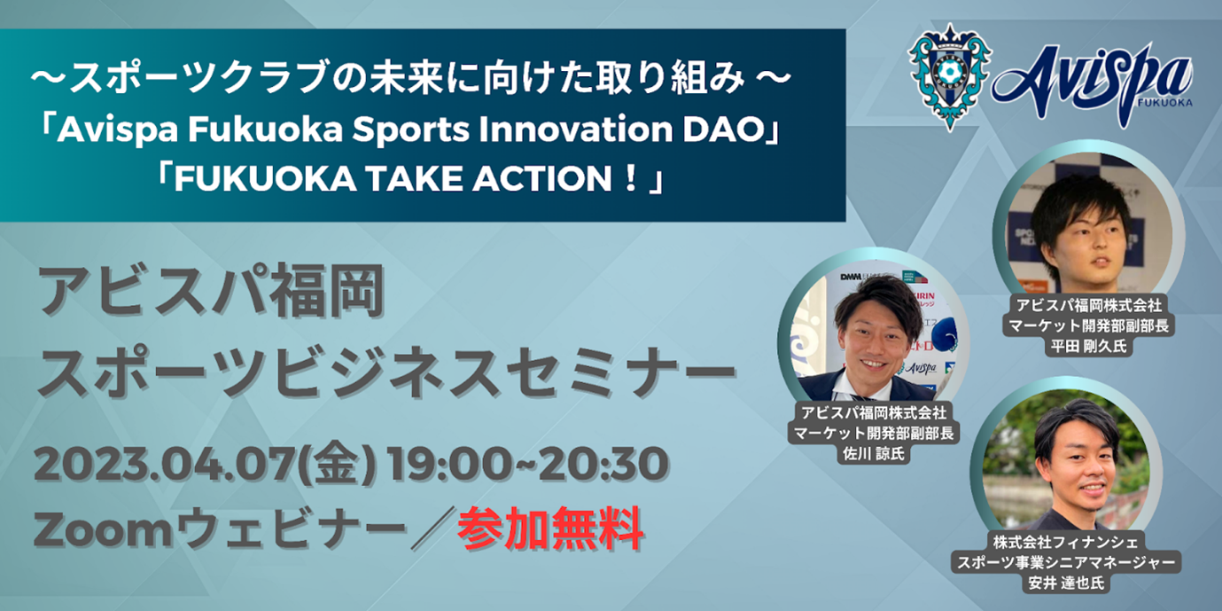 今回のテーマは、今年度より新たに取り組み始めた、Web3を活用した日本初のスポーツDAO※「Avispa Fukuoka Sports Innovation DAO」と、社会連携(シャレン)プロジェクト「FUKUOKA TAKE ACTION!」となります。