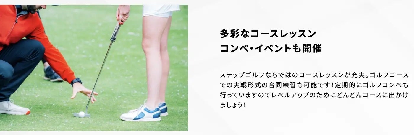 ステップゴルフならではのコースレッスンが充実。ゴルフコースでの実戦形式の合同練習も可能です!
