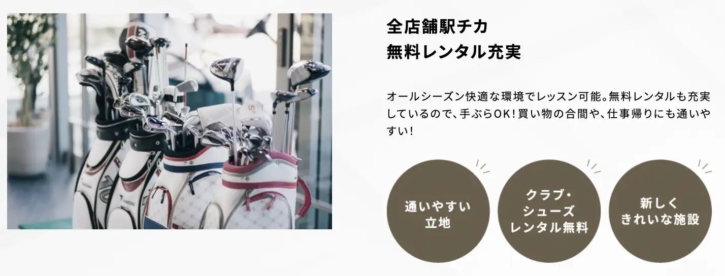 オールシーズン快適な環境でレッスン可能。無料レンタルも充実しているので、手ぶらOK!買い物の合間や、仕事帰りにも通いやすい!