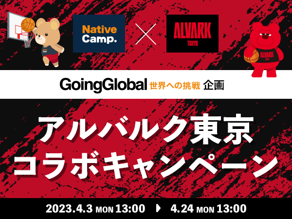 ネイティブキャンプは、みなさまに楽しく英語学習に取り組んでいただきたいとの考えから、この度「Going Global 〜世界への挑戦〜 企画 アルバルク東京コラボキャンペーン」を企画しました。