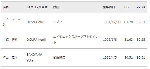 【チームJAPAN】https://www.jaaf.or.jp/athletes/?event=1