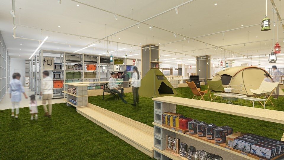 アウトドアエリアを「お祭り広場」と名付け、平常時はテントなどのアウトドアギアの展示をしながらも、イベント、ワークショップなど、この場所でいつもお祭りのような賑わいを生んでいきたいと考えています。