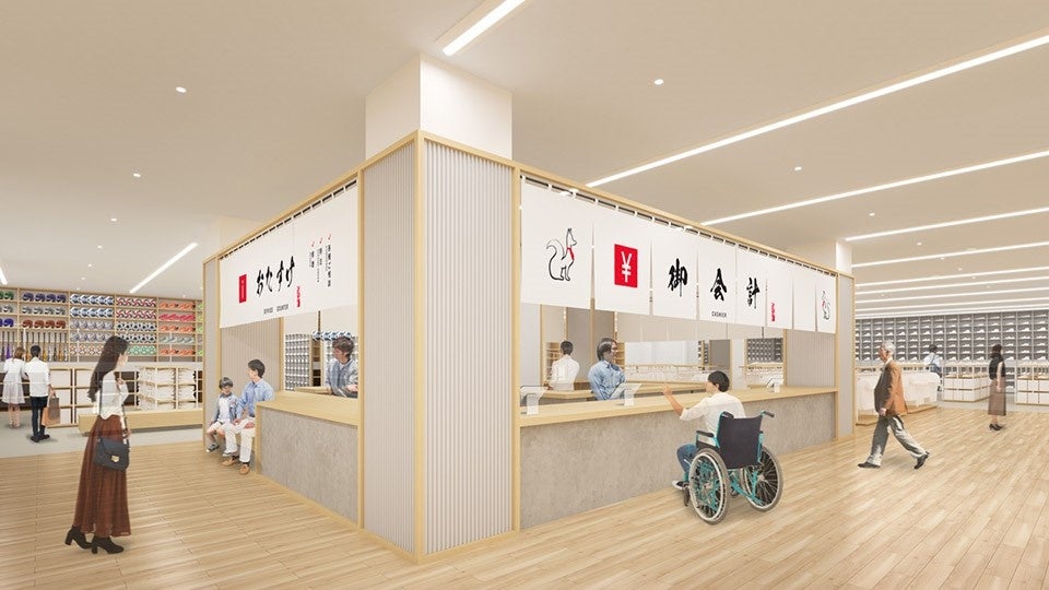 新コンセプト店舗1号店となる『スポーツオーソリティ豊川店』では、ファミリー層からシニア層まで幅広いお客さまに和みながらお買い物していただけるよう「和」の雰囲気を大切にし、お客さまが気軽に立ち寄れる「縁側」をモチーフとした象徴的なデザインを店頭に施し、お店の「内」と「外」をつなぎ様々な世代のお客さまが寛ぎながらショッピングやコミュニケーションを楽しめる居場所になる空間を目指します。