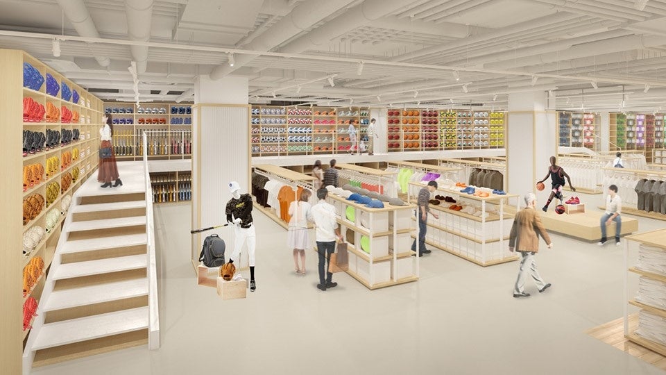 店内約800坪のスペースに、各種スポーツウェアやシューズからアウトドアグッズまで、豊富に商品を取り揃えるほか、日々の生活でお使いいただけるウェア等も多数展開いたします。