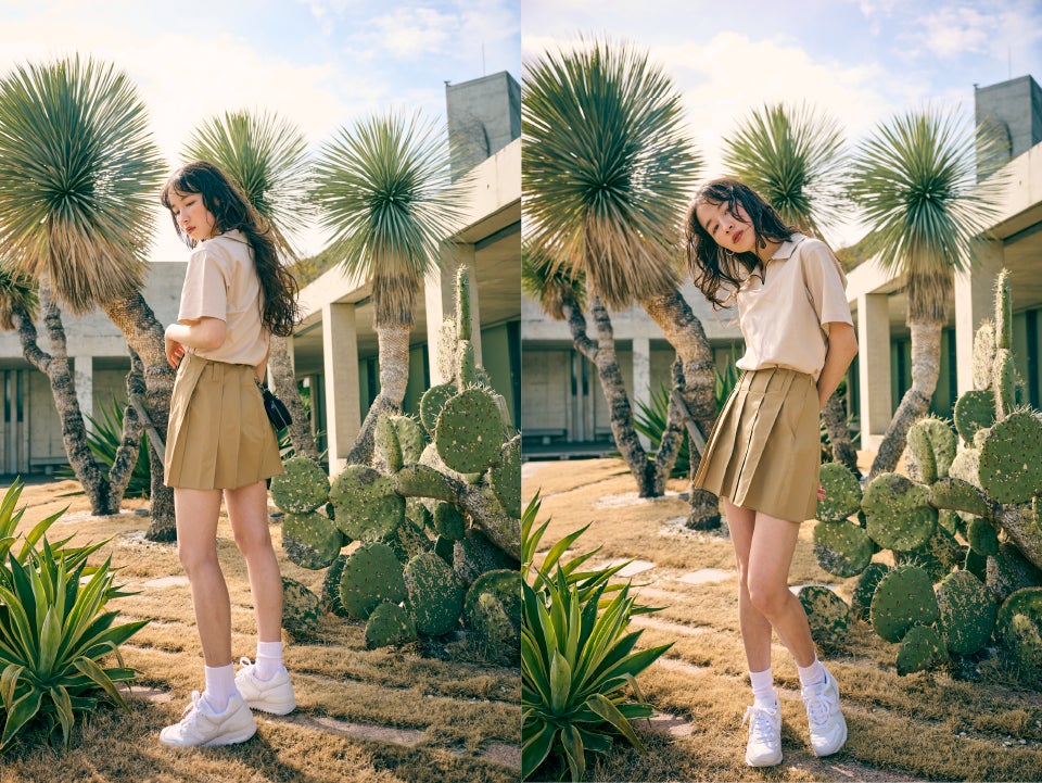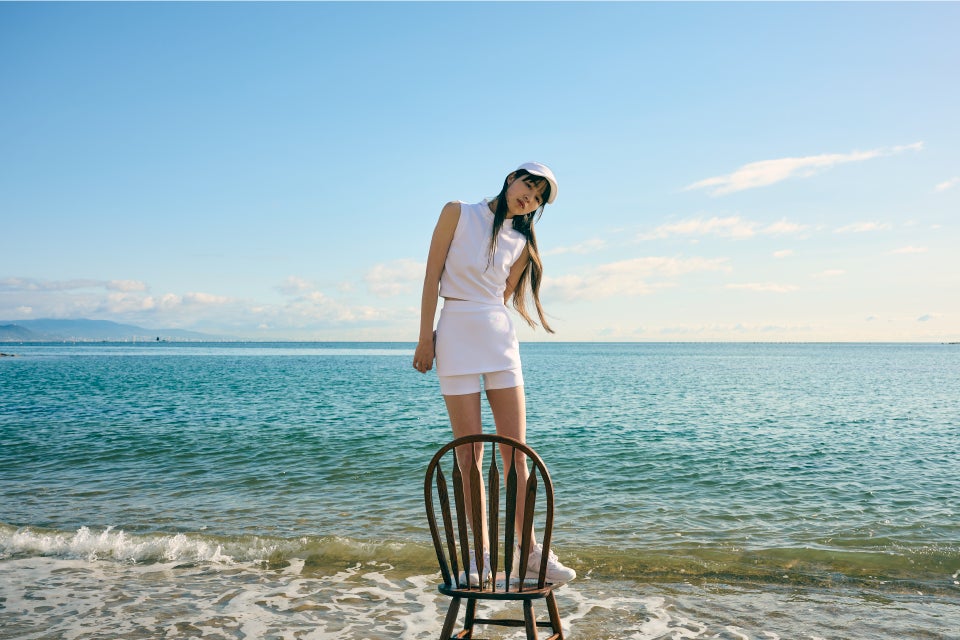 ミニマルなデザインに、メリハリのあるシルエット。機能性も考慮したスポーティな素材でありながら、モダンでフェミニンなカッティングにより、あえてゴルフらしさを削ぎ落としました。ゴルフ場で自然に溶け込むように、空、芝、土などから色選びの着想を得ています。華奢な方にもジャストフィットでご着用いただけるよう、コンパクトなサイズ感を意識しています。