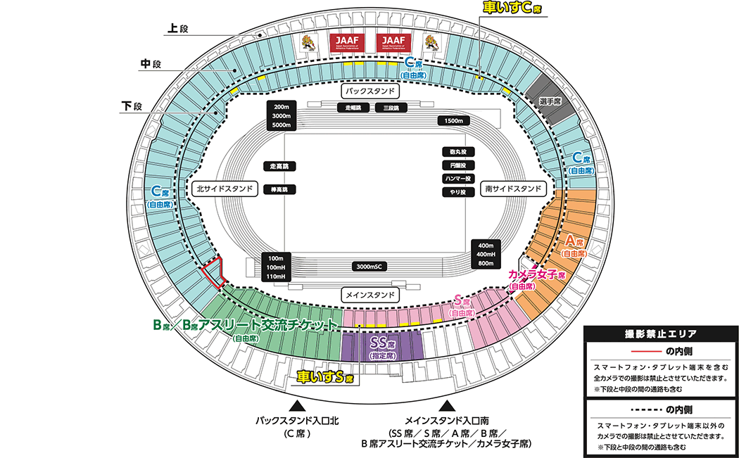 また、今年はスペシャルチケットとして、SS席の他、1日50席限定の「B席アスリート交流チケット」、1日15席限定の「カメラ女子席」、そして日本選手権では初めてサブトラックの観戦ができる「サブトラック観戦チケット」の販売をいたします。こちらも席数限定の販売となりますので、お早めにお買い求めください!