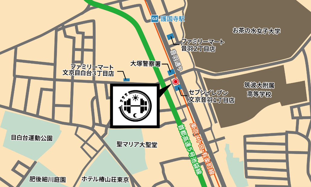・東京都文京区音羽1丁目17−11 花和ビル2階(東京メトロ有楽町線/護国寺駅 徒歩1分)