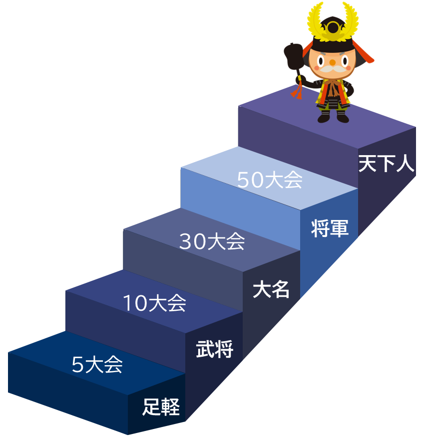 ④通算走城数により「足軽」、「武将」、「大名」、「将軍」、「天下人」と立身出世していきます。