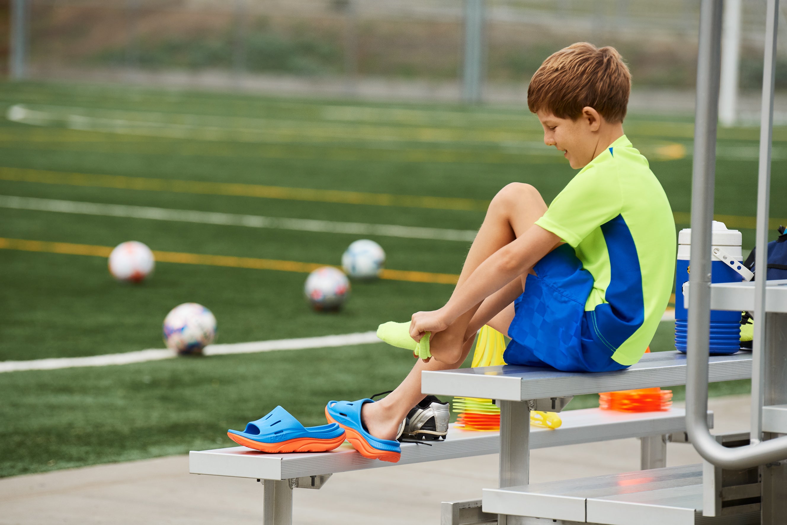 通気性に優れたエアフローを備えたユース向けの「ORA RECOVERY SLIDE 3」が登場。ミッドソールとトップソールにサトウキビ由来の素材を20%使用するなど、地球にやさしい素材を取り入れています。また、足に直接触れる上部には柔らかいフォームを採用し、底部にはラバライズドEVAを使用した2層EVA構造で作られたミッドソールを採用することで、活発なユースに必要なクッション性と耐久性を提供します。足にも優しく、サポートが必要なユースのニーズに応えるリカバリーサンダルです。
