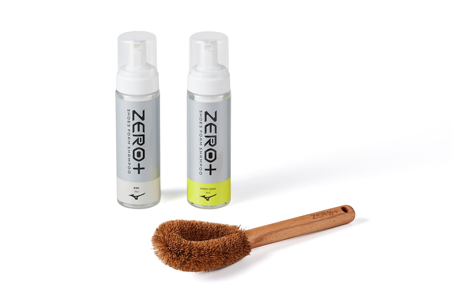 <シューズの汚れをゼロに、そして“香り”をプラス>という商品コンセプトで開発されたシューズのメンテナンス用品です。シューズシャンプーの他に抗菌・消臭効果にレモングラスの香りをプラスし、汗の臭いを抑える「ゼロプラス シューズキープフレッシュミスト」、樹脂製の毛を採用し、効率的に汚れを落とせる「ゼロプラス シューズウォッシングブラシ」など計14種類あります。ミズノは、大切なシューズをより長持ちさせるために洗うということの大切さも発信していきます。