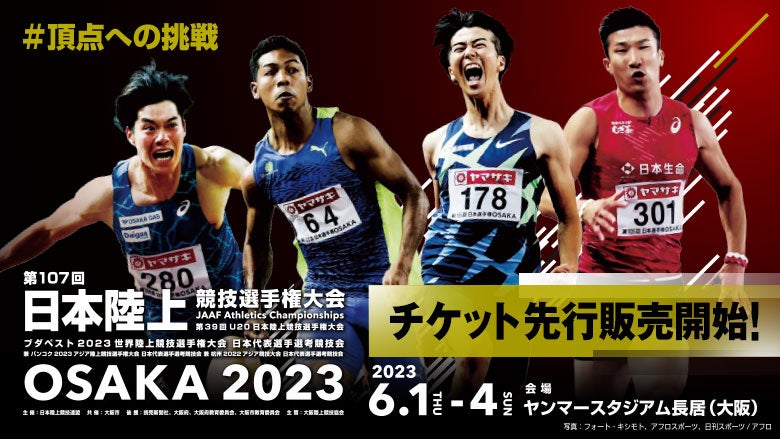 2023年6月1日(木)~4日(日)に大阪・ヤンマースタジアム長居で開催する「第107回日本陸上競技選手権大会」のチケット先行販売がスタートいたしました!