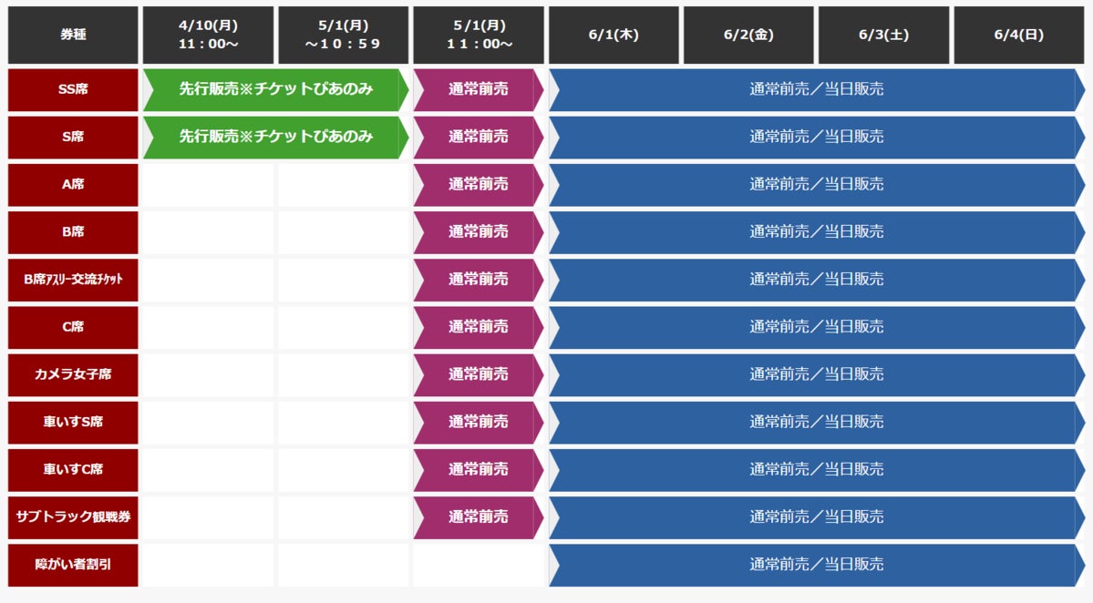 先行販売では「SS席」と「S席」のチケットを購入いただけます。